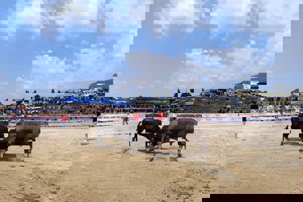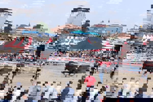 temsilcileri, muhtarlar ve yaklaşık 20 bin boğa güreşi sever katıldı.