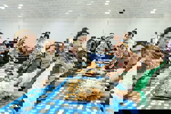 salonunda hanımalar da topalak yuvarlama işini yaptı.
